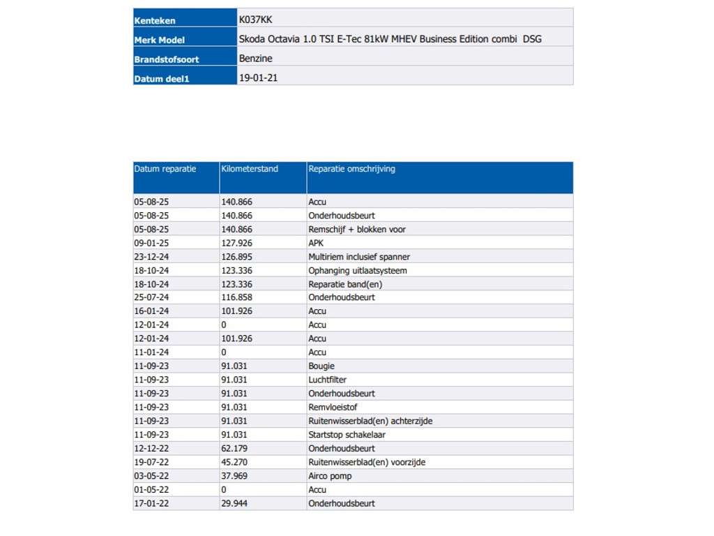 Cilinderinhoud: 999 cc Aantal cilinders: 3 Aantal deuren: 5 Aantal versnellingen: 7 Datum deel 1: 19-01-2021 Energielabel: