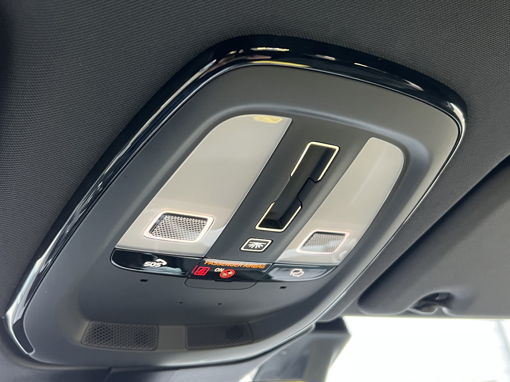 * optiecode RC00 Nappa lederen bekleding met comfortstoelen. De voorstoelen zijn geperforeerd, hebben stoelventilatie en elektrisch verstelbare zijwangen. Orrefors™ kristallen pookknop, Zwarte hemelbekleding Metal Mesh aluminium inleg en 3-spaaks kunstlederen stuurwiel.